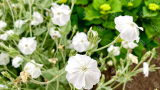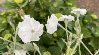 スイセンノウ スイセンノウ2 白い毛の生えた株、ビロードのような触感で花は花茎を分枝させ茎の頂に直径3cmほどの紅紫色〜白色の5弁花をつける。学名は、Silene coronaria、ナデシコ科マンテマ属 2025.10.19 スイセンノウ